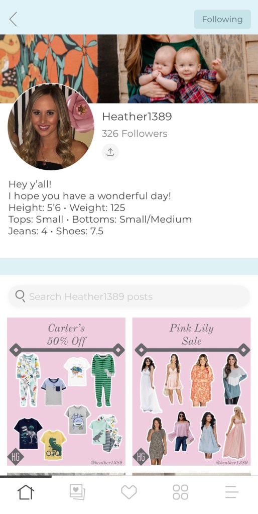 Follow me on the free LIKEtoKNOW.it app! On the app I share products, clothing, and sales. When I share on the app you can select an item and order it for yourself! Follow me here: https://www.liketoknow.it/Heather1389